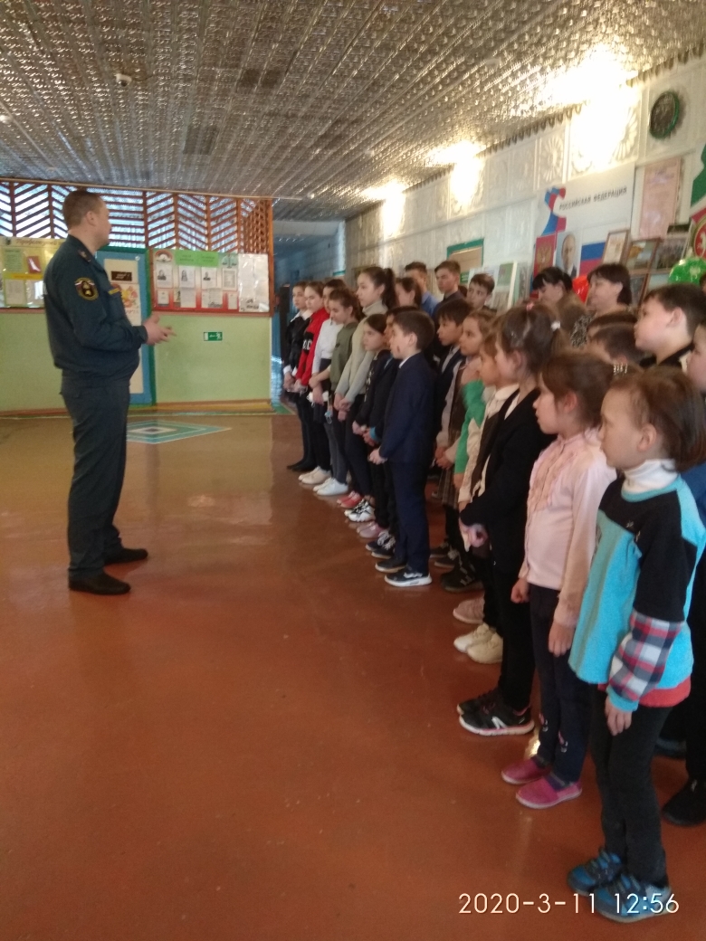 11.03.2020 года начальник МОНД и ПР по Апастовскому и Кайбицкому муниципальных районов УНД и ПР ГУ МЧС РФ по РТ Валиев И.И. провел беседу с учащимися на тему «Пожарная безопасность». Также им был проведен инструктаж на тему «Весеннее половодье. Безопасные весенние каникулы».