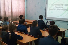 8 декабря в школе провели открытый классный час на тему "9 декабря - День героев Отечества". Участвовали все учащиеся школы.