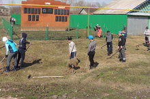 В школе прошли субботники. Учащиеся школы привели в порядок и территорию обелиска.