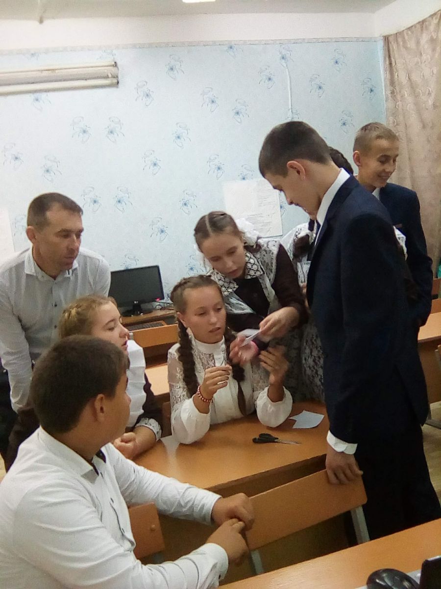 Беренче сентябрь - Белем бәйрәме көнендә 8-9 сыйныф укучылары беренче дәрестә үз белемнәрен тикшерү буенча викторинада катнаштылар. Күп кенә кызыклы, эчтәлекле сорауларга җавап биргәннән соң, укучылар дәресне оригами стилендә тынычлык күгәрчене ясап төгәлләделәр. Сиразов Ильнар җитәкчелегендәге 9 сыйныф укучыларының тынычлык күгәрчене, Шакирҗанова Румилә җитәкчелегендәге 8 сыйныф укучылары кошчыгыннан матуррак булып чыкты. фото