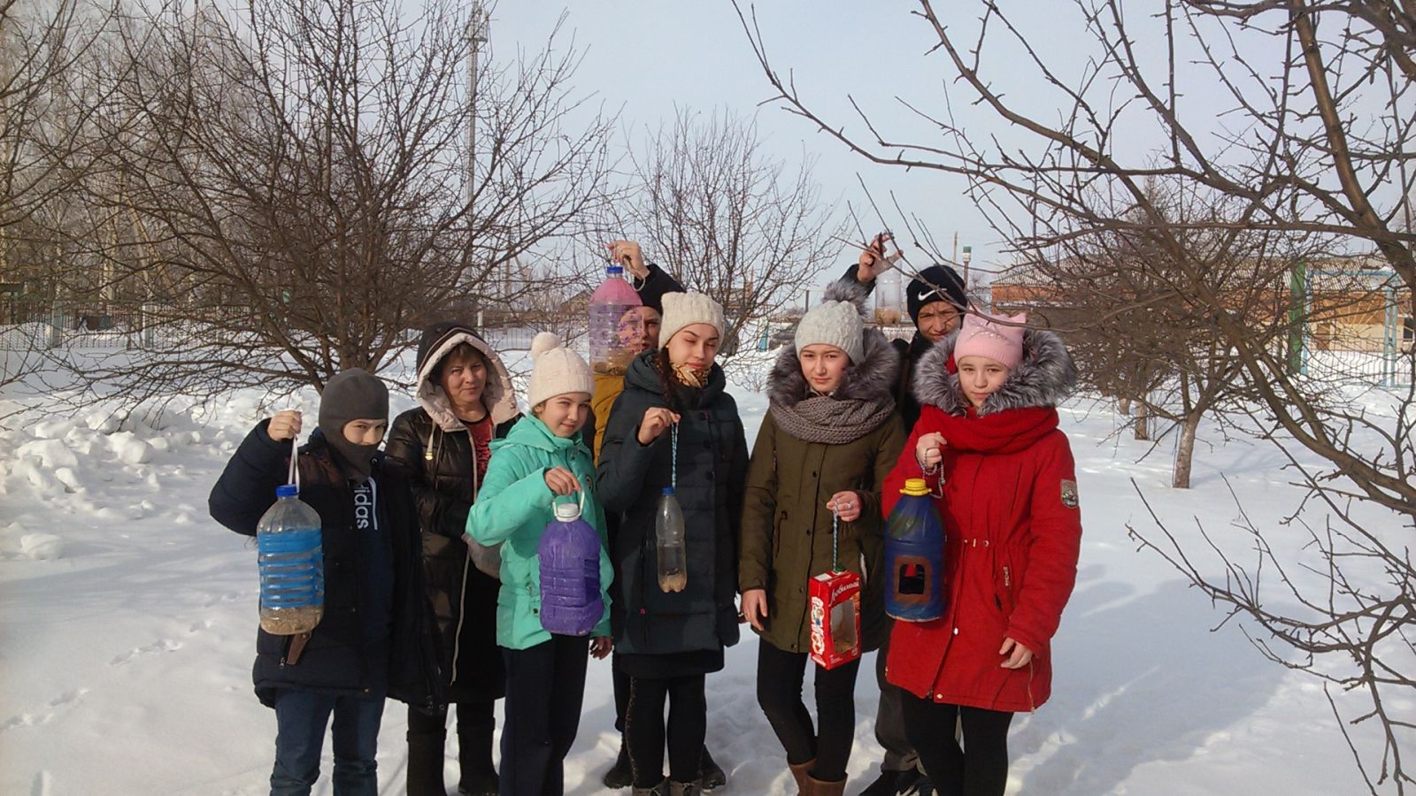 Сыйныф җитәкчеләре Шакирҗанова Румилә җитәкчелегендә 7 сыйныф укучылары кышкы салкыннарда канатлы дусларыбызга ярдәм оештырдылар. Көндәлек көнкүреш калдыкларыннан ясалган оялар мәктәп ишек алдындагы агачларга куелды.