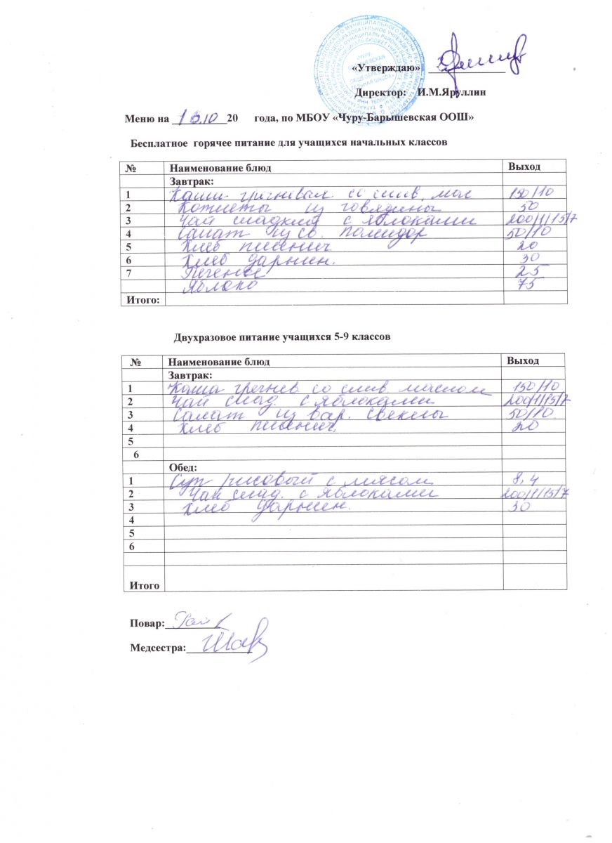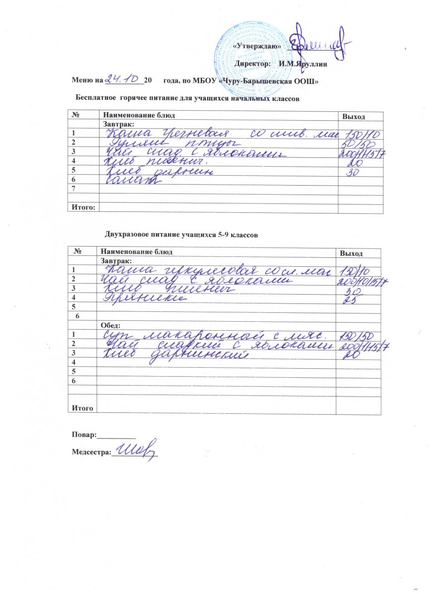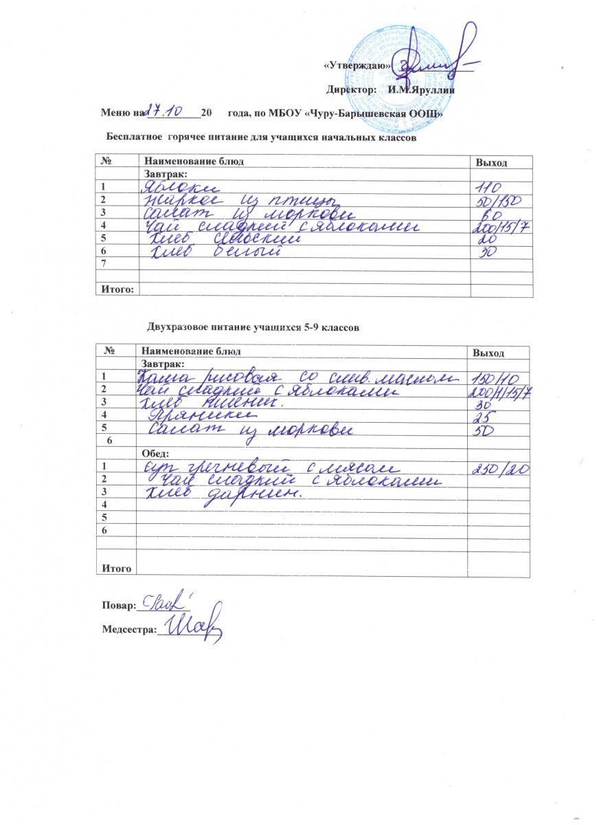 Меню на 10 октябряМеню на 12 октября Меню на 13октября Меню на 14 октября Меню на 15 октября Меню на 16 октября Меню на 17 октября Меню на 19 октября Меню на 20 октября Меню на 21 октября Меню на 22 октября Меню на 23 октября Меню на 24 октября Меню на 26 октября Меню на 27 октября Меню на 28октября Меню на 29.10 Меню на 30.10 Меню на 31.10