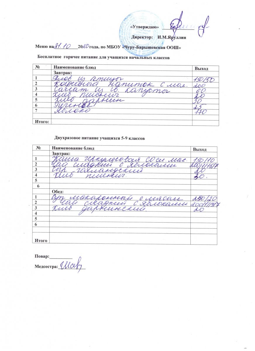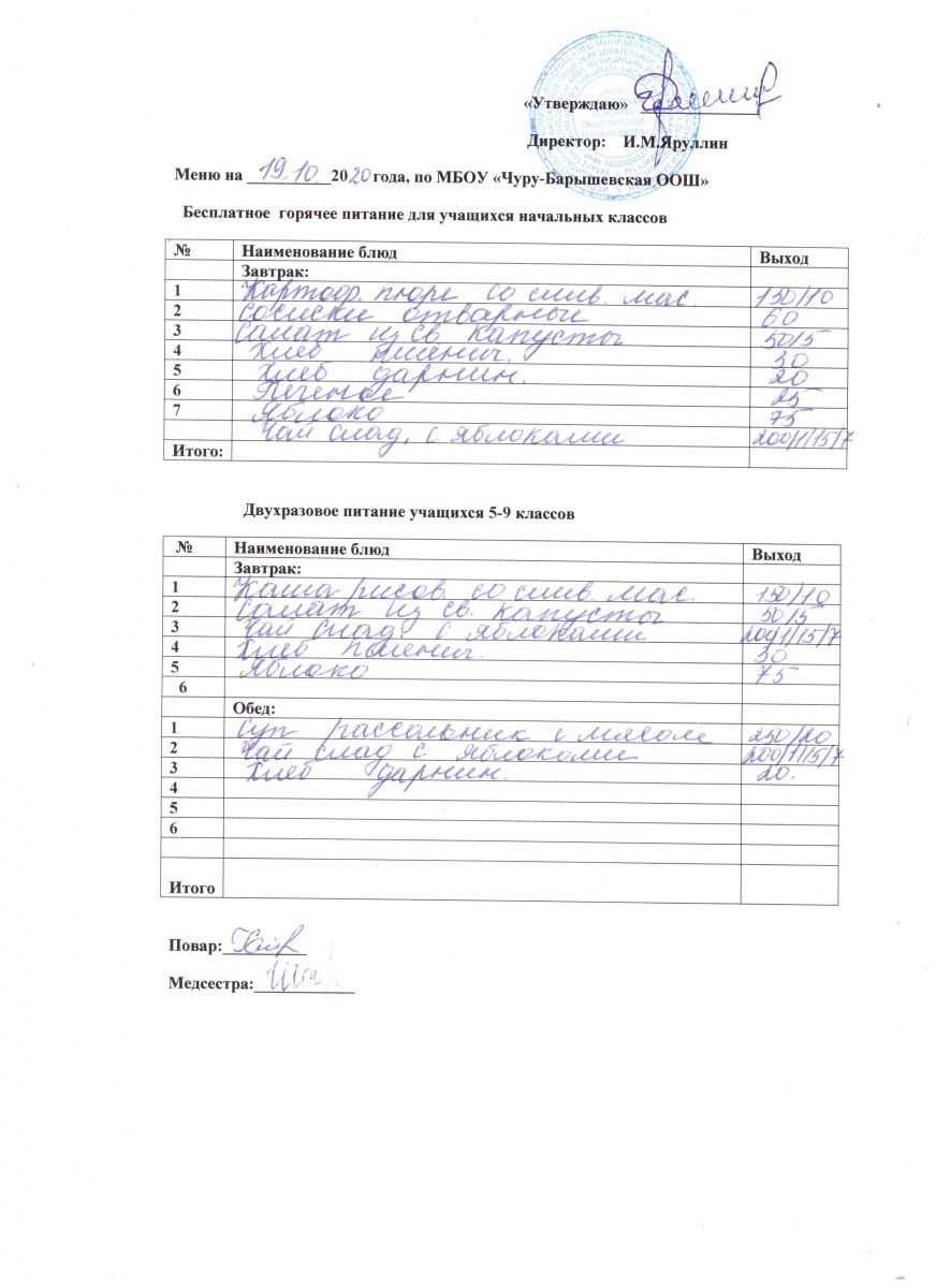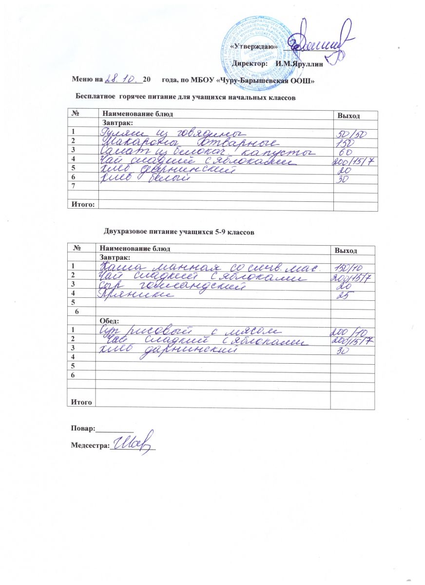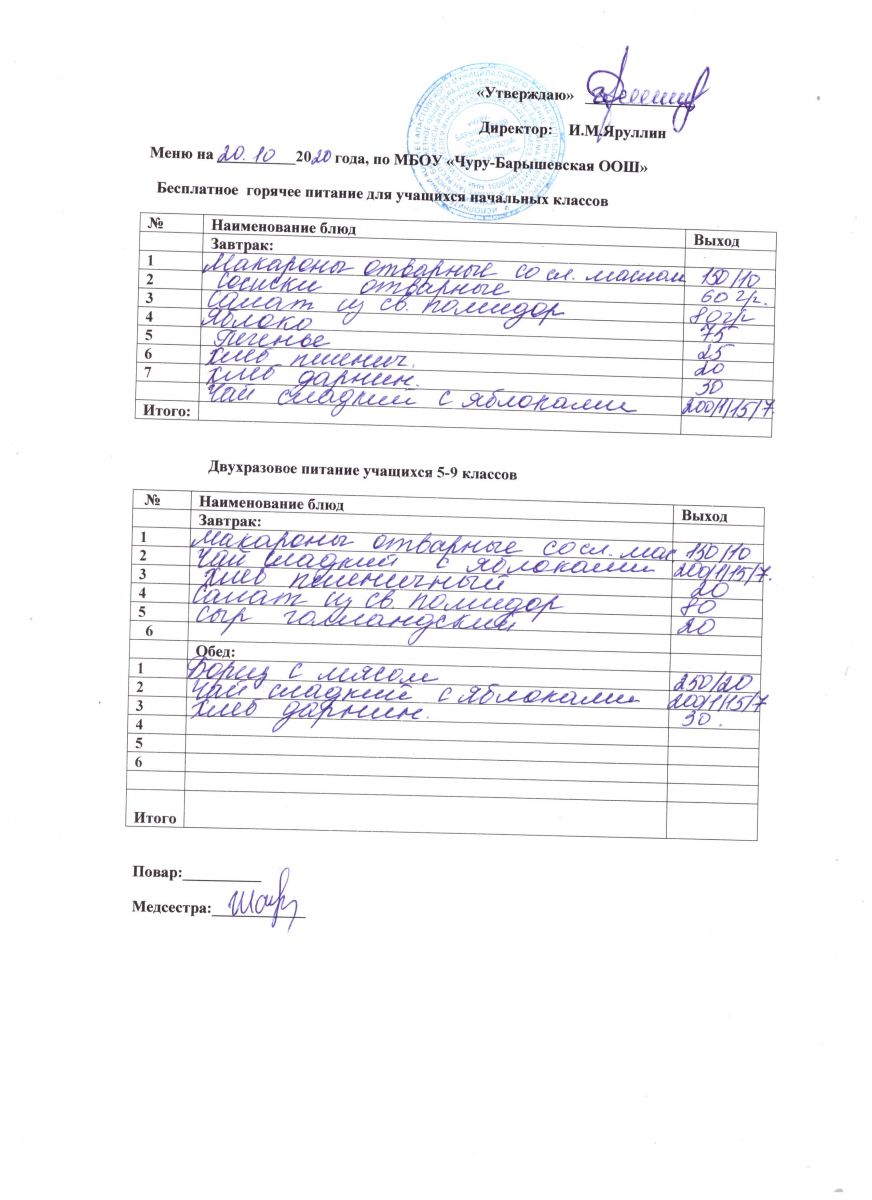 Меню на 10 октябряМеню на 12 октября Меню на 13октября Меню на 14 октября Меню на 15 октября Меню на 16 октября Меню на 17 октября Меню на 19 октября Меню на 20 октября Меню на 21 октября Меню на 22 октября Меню на 23 октября Меню на 24 октября Меню на 26 октября Меню на 27 октября Меню на 28октября Меню на 29.10 Меню на 30.10 Меню на 31.10