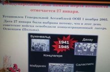 Тарих һәм җәмгыять белеме укытучысы Дәүләтҗанова М. ,“Халыкара холокост корбаннарын искә алу көне уңаеннан ,10 класс укучылары белән информацион дәрес үткәрде һәм презентация әзерләделәр.Холокостның тарихы,аның сәнгатьтә чагылышы,холокостка багышланган һәйкәлләр турында бай мәгълумат тупланды.