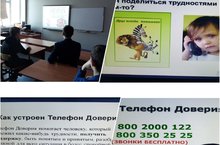 Сегодня во всех классах прошли классные сачы на тему "Детский телефон доверия",с целью определить ресурсы получения эмоциональной поддержки в трудной жизненной ситуации,формировать умение находить позитивное решение в трудной ситуации и навык принятия решения.
