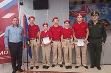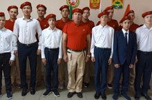 Шесть юных патриотов дали торжественную клятву посвящения в ряды юнармейцев. Поздравление руководителя с получением гордого звания «юнармеец» поддержали троекратным «Ура!».
