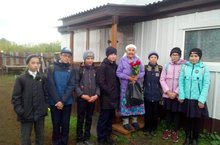 Миннебаева Альбина үзенең 8 класс укучылары белән авылыбызның хезмәт ветераннары Флера апа һәм Кашаф бабай Галәветдиновларны бәйрәм белән котлап ,чәчәк бәйләмнәре һәм күчтәнәчләр тапшырып кайттылар.Өлкәннәр бик шат булып,рәхмәтләр әйтеп озаттылар.Балалар әлеге изге гамәлләреннән үзләре дә канәгать калдылар.