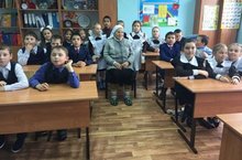 Өлкәннәр ункөнлеге уңаеннан башлангыч сыйныф укучылары Михайлова Ирина апа белән очраштылар.Ул балаларның укулары белән кызыксынды,уңышлары белән танышты,төпле киңәшләрен бирде.Әдәпле булырга,белемгә омтылырга,ялкауланмаска чакырды.