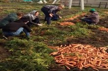 Мәктәп бакчасында көзге эш кайный.Укучылар узләре устергән уңышны җыеп алу белән мәшгуль. Эшләве күңелле,чөнки уңыш шэп,димәк уку елы дәвамында табында витаминлы ризыклар өзелмәячәк!