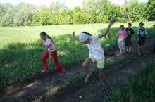 Бүген лагерьга йөрүче балалар тәрбияче апалары белән авылыбызның бик күп бәйрәмнәре уза торган-"Мәхәббәт бакчасы " дип аталган табигатьнең матур урынына бардылар. Анда күнелле уеннар уйнап, таганнарда атынып ял итеп кайттылар.