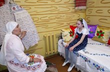 5 нче сыйныф укучысы Мөхәммәтгалиева Алия әнисе белән «Бабам ясаган, әтием йоклаган бишек» дип аталган кичәдә катнаштылар.