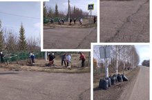 Сегодня учителя школы вышли на субботник. Дружно разобрав рабочий инвентарь: мётлы и грабли, провели работу по очистке территории: убрали опавшую листву, подмели около здания школы, привели в порядок дорожки на прилегающей территории.Бүген мәктәп укытучылары өмәгә чыктылар. -