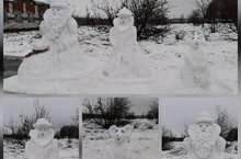 Ребята с учителями сделали снежные фигурки.