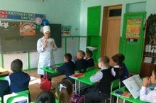 Сегодня состоялась встреча с сотруудниками МЧС, а также проведена тренировочная эвакуация /МЧС вәкииләре мәктәптә өйрәтү эвакуациясе үткәрделәр.