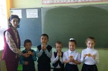 Обучающимся 1 класса были вручены светоотражающие элементы /1 сыйныф укучыларына яктылыкны кире кайтаргычлар тараттылар.