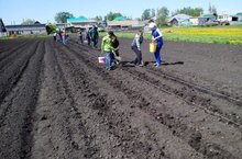 Посадка картофеля 14.05.2016 В этом году увеличили площадь посадки картофеля.