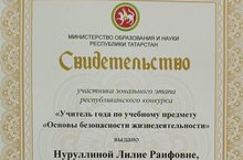 Нуруллина Лилия, достойно прошла конкурсные испытания в зональном этапе Республиканского конкурса профессионального мастерства "Учитель года по курсу "Основы безопасности жизнедеятельности"".