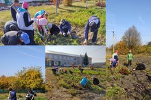 Югары сыйныф укучылары мәктәп бакчасыннан бәрәңге уңышын җыеп алдылар..