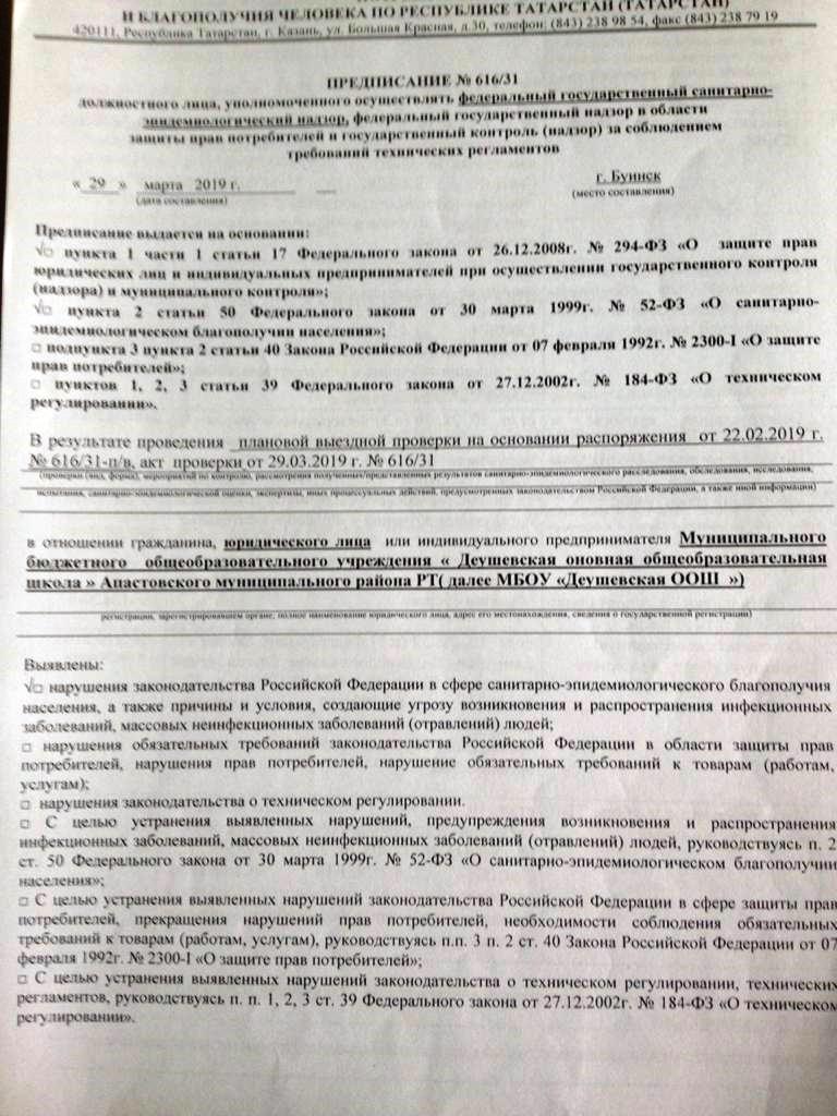 Предписание № 616/31 от 29.03.2019