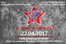 Историческое тестирование 24.04.2017 Масштабное историческое тестирование прошло по всей России и за рубежом 22 апреля. Из нашей школы в нем приняло участие 9 юнармейцев под руководством учителя истории Гиззатуллиной П.В. Международная акция «Тест по истории Великой Отечественной войны» проводится Молодежным парламентом при Государственной Думе в рамках проекта «Каждый день горжусь Россией!»