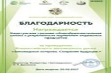 Благодарственное письмо 22.02.2017 За проведение уроков и мероприятий в рамках "Всероссийского заповедного урока" (уч. Заббарова А.Г., Темиргазиева А.В.,) Каратунская средняя школа награждена Благодарственным письмом директора ЭкоЦентра "Заповедники" Н.Р.Данилина.