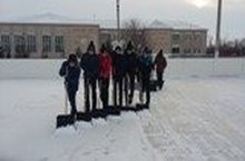 Расчистка катка 06.12.2016 Учащиеся школы со старанием расчищают каток, ведь по вечерам они от души катаются на коньках и играют в хоккей. Сегодня очередь 8 а класса.