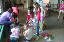 В пришкольном лагере «Солнцеград» сегодня день веселых затей. Для оформления территории школы, для украшения цветочных клумб воспитанники лагеря изготавливают поделки из пластиковых бутылок.