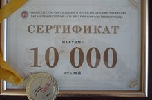 Нафиковой Алие Азатовне - ученице 11б класса за победу на республиканском туре олимпиады по татарскому языку вручен сертификат МО и Н РТ в сумме 10000 рублей.