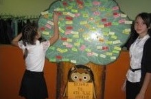 С 29 октября 7а класс стал дежурить по школе. Это последняя неделя первой четверти. Им пришла такая идея: добавить всем, что нужно. В холле школы поставили дерево с совой, а на дереве развесили объявление «Возьми то, что тебе нужно», а на маленьких листочках написали и приклеили маленькие листочки. Здесь были «уверенность», «дружба», «любовь», «счастье», «вера», «надежда», «доброта», «мир», «везение», «радость», «удача», «успех», «хорошие оценки». Стали ждать, что же будет. А было то, что через полчаса все листочки были разобраны, и даже некоторым не хватило. Они обрадовались – значит, понравилось! И решили повторить и на следующий день. Не жалко добрых пожеланий. Дарите окружающим радость, счастье и уверенность в себе… И оно бумерангом вернётся к тебе.