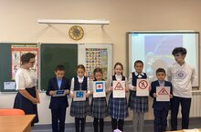 Сегодня обучающиеся 4а класса повторили правила дорожного движения и вспомнили встречающиеся на пути дорожные знаки.