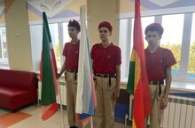 Полноценная учебная неделя в КСОШ стартовала с торжественной церемонии поднятия флага России и Татарстана, а также исполнения гимнов.