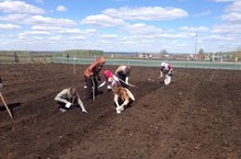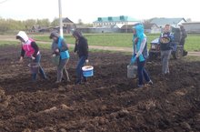 В рамкахакции "Помоги родной школе" наши выпускники Галиуллин Н.Г., Садрутдинов Р.С., Саттаров Ф.Я. приобрели для школы семенной картофель.Учащиеся 8,9 классов сажают картошку.