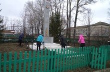 Проведено уборок и благоустройства обелиска. Учительница истории Гайнуллина Г.Х. рассказала ученикам начальной школы об основных событиях в Великой Отечественной войне, о героических подвигах солдат красной армии.