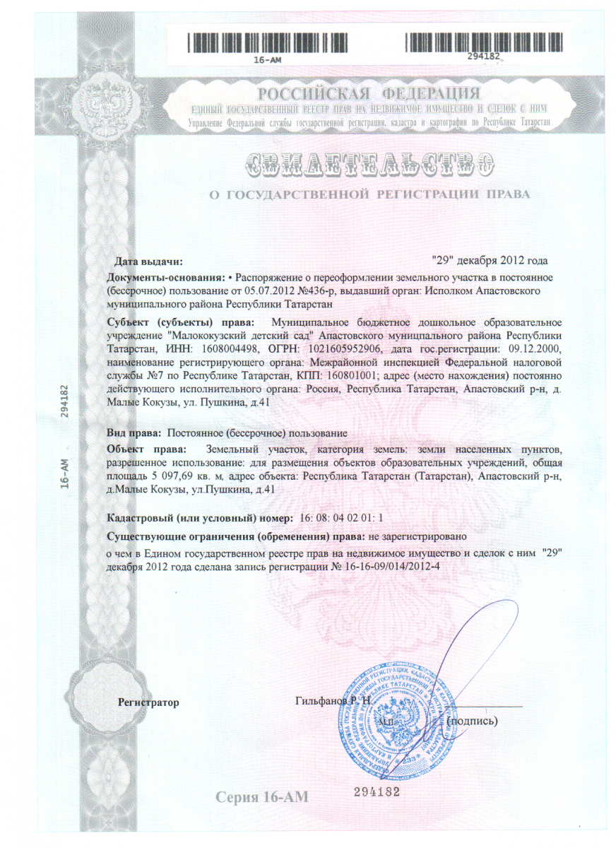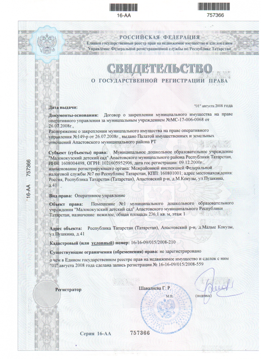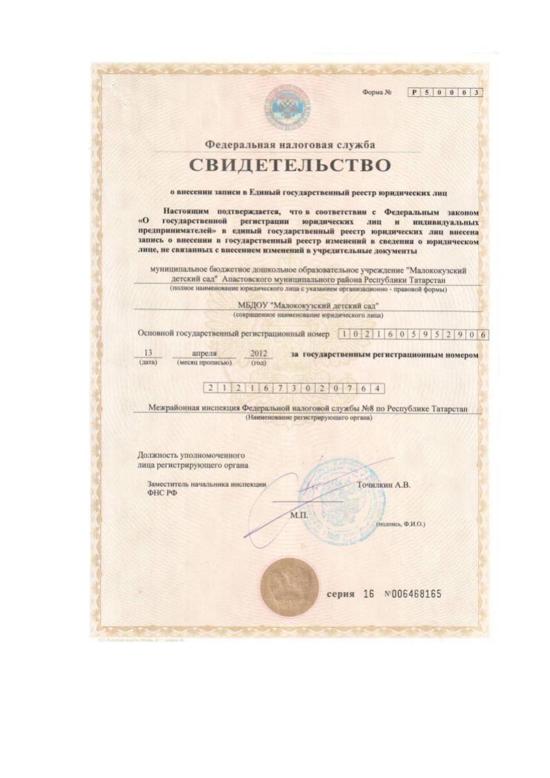 | Короткое название: | МБДОУ «Малококузский детский сад» Апастовского муниципального района РТ |