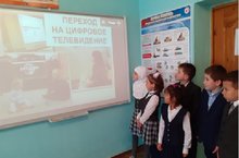 Для информирования детей об отключении аналогового вещания федеральных телеканалов и о переходе на цифровое вещание в школе прошли классные часы с использованием презентации «Цифровое эфирное телевидение что это?». Дети проявили интерес к указанному вопросу, решили этом рассказать своим родителям и родственникам.