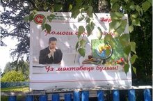 Баннер, сделанный в рамках акции “Помоги своей школе” в МБОУ “Мурзинская СОШ” была повешена перед входом в школу на краю главной асфальтной дороги.