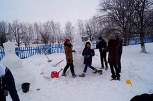 Учащиеся 8-11 классов вместе со своими учителями украсили школьный двор снежными фигурами