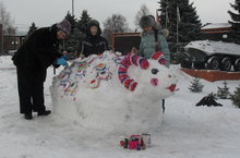 По традиции в нашем районе перед Новым годом ежегодно проводится конкурс "Снежных фигур",где коллектив нашей школы вместе с учениками принимает активное участие.Это затея очень нравится учащимся,они с интересом занимаются этим, проявляя творческий подход.В основном все идеи исходят от учащихся.