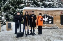 "Хәтерлибез!" Акциясе"Рәхмәт" Бөтендөнья көне уңаеннан Апас аграр көллияте волонтерлары һәйкәлләр территориясен кардан чистартты. -