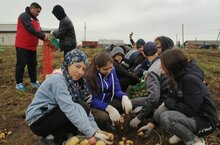 Весь состав колледжа совместно со студентами учавствовали в сборке картофеля.