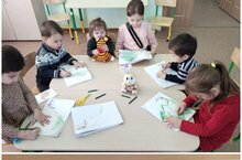 В деском саду регулярно проводятся занятия по рисованию.Сегодня малыши занимались апплекацием +рисованием.