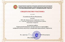 Муниципальное бюджетное учреждение дополнительного образования «Центр детского творчества» «Сэлэт» п.г.т. Апастово Апастовского муниципального района Республики Татарстан