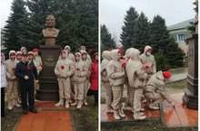 После урока , юнармейцы с представителями музея возложили цветы к бюсту М.И. Золина.