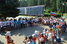 День Российского флага – праздник, который помогает объединить общество на вечных ценностях – патриотизме, государственности. К этому знаменательному событию в Апастовском районе на базе детского оздоровительного лагеря «Свияга +» был прослушан «Гимн Российской Федерации», проведена акция «Российский триколор», в которой ребята детских общественных организаций и движений (РДШ, СНТ, ДРД, Волонтёры) повязывали ленточки на запястья участников мероприятия. А так же был проведён массовый флешмоб «Вперёд, Россия!». Особенно трогательным моментом на данном мероприятии звучали из детских уст слова известной песни «С чего начинается Родина…». Вожатыми была проведена игра «Белый, синий, красный».Среди детей провели опрос на знание значения цветов нашего флага, знают ли они историю появления этого государственного символа. Ребята узнали много нового и интересного, а все желающие смогли сфотографироваться с флагом на память.Охват участников мероприятия составил 175 человек.На празднике присутствовали заместитель Руководителя Исполнительного комитета Апастовского МР РТ Мингазиев Р.Х., начальник отдела образования Хайруллина А.Э., директор Центра детского творчества «Сэлэт» Салахова Г.Ф., начальник лагеря «Свияга+» Галеев Д.Н., представители СМИ. -