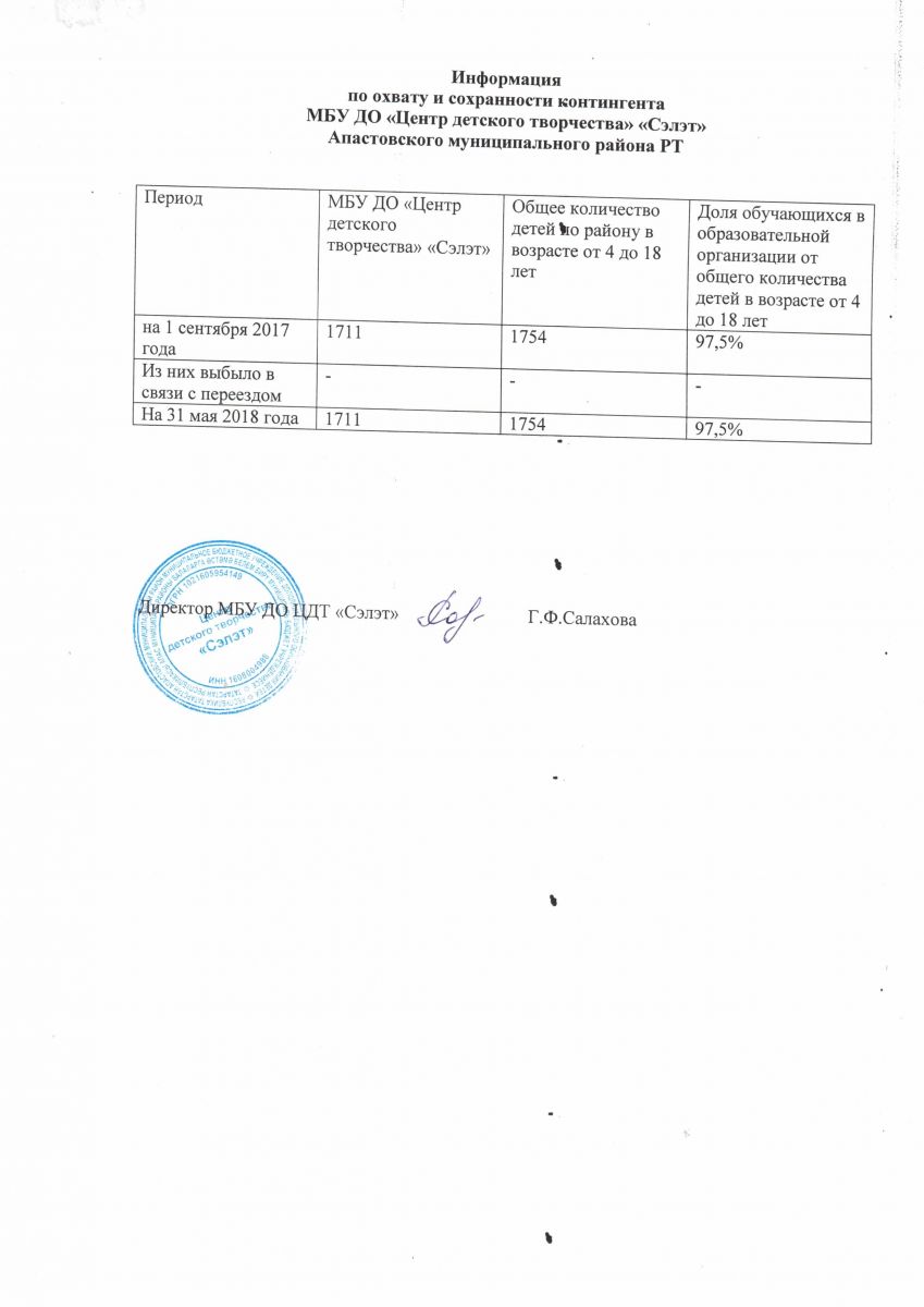 Информация об охвате детей дополнительным образованием в 2017-2018 учебном году в МБУ ДО ЦДТ "Сэлэт"