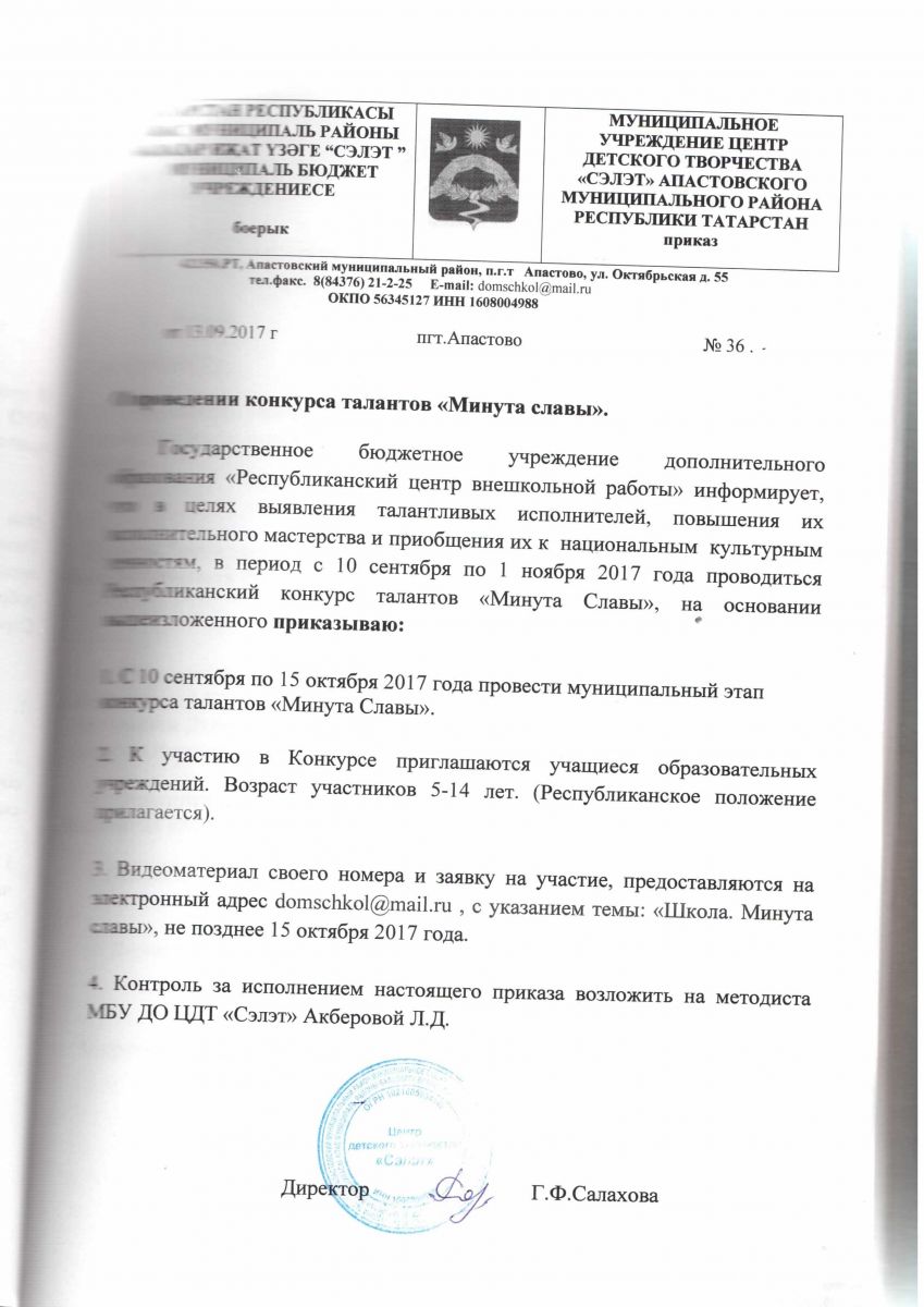 Приказ о проведении конкурса талантов "Минута славы".jpg
