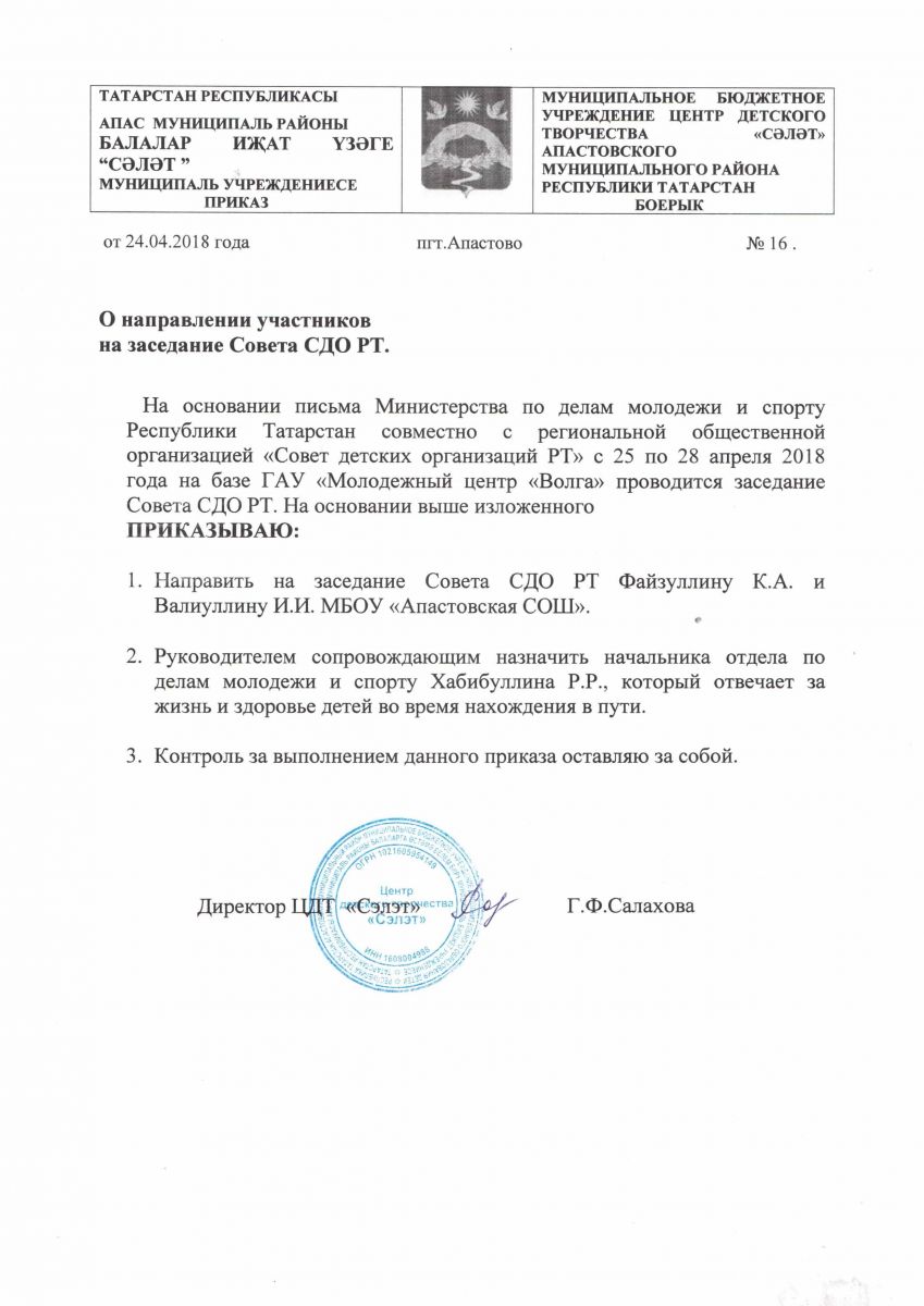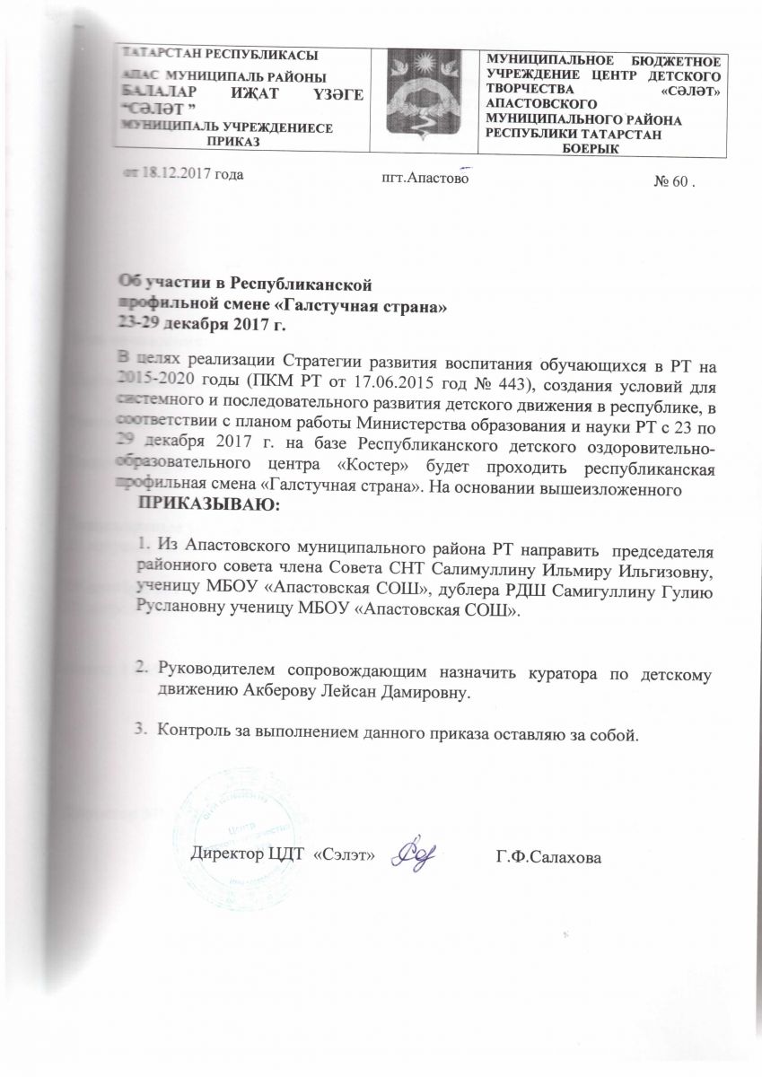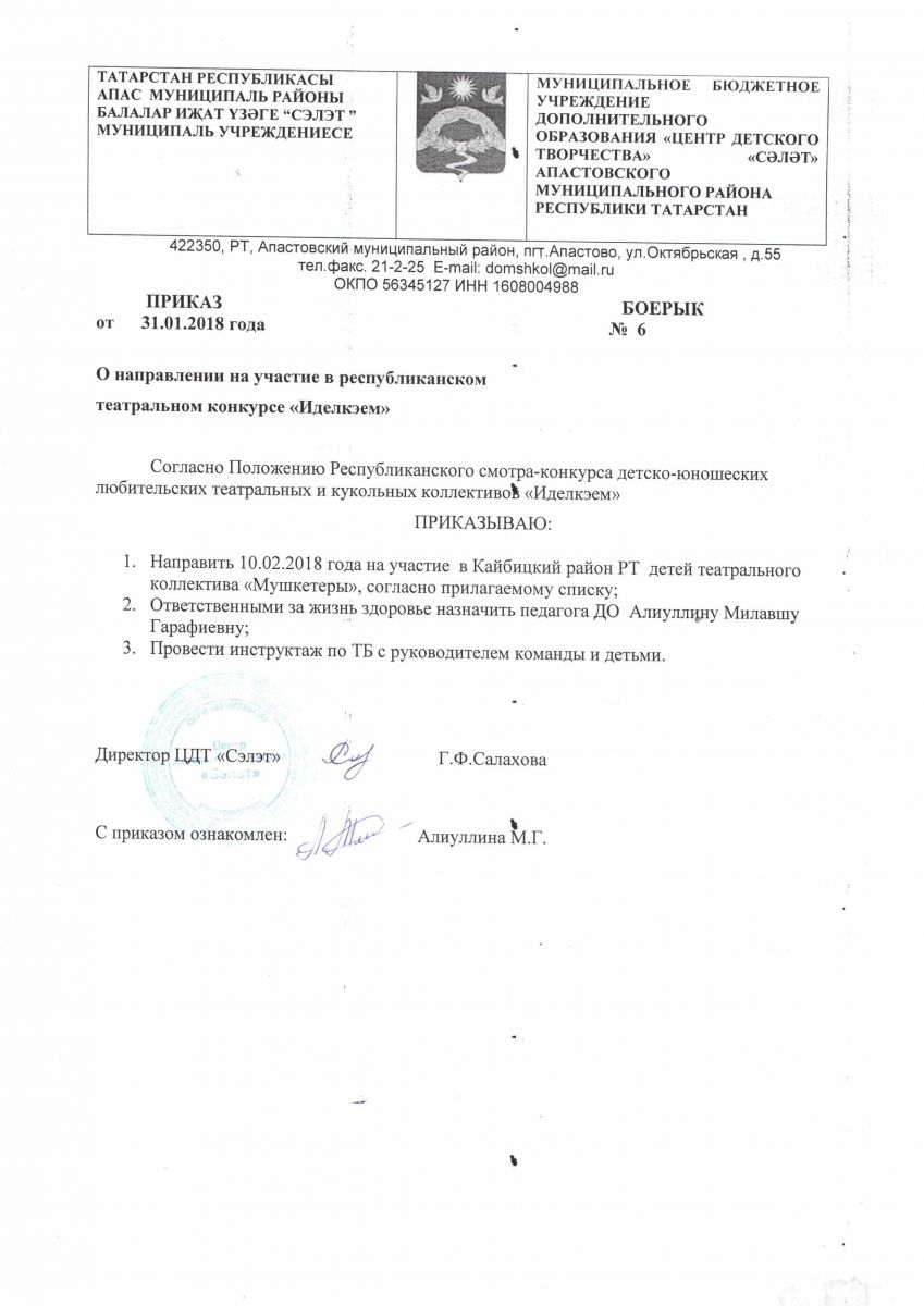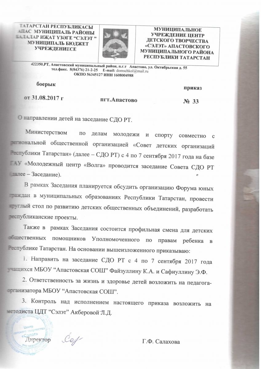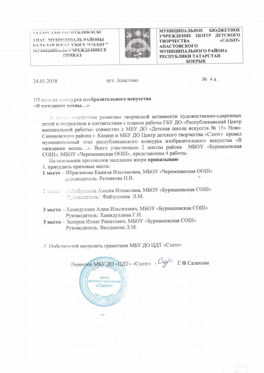 Муниципальное бюджетное учреждение дополнительного образования «Центр детского творчества» «Сэлэт» п.г.т. Апастово Апастовского муниципального района Республики Татарстан