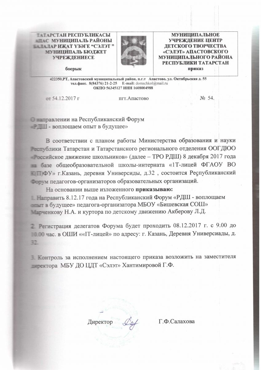 | Адрес: | 422350, РТ, Апастовский район, п.г.т. Апастово, ул. Октябрьская, дом 55 |