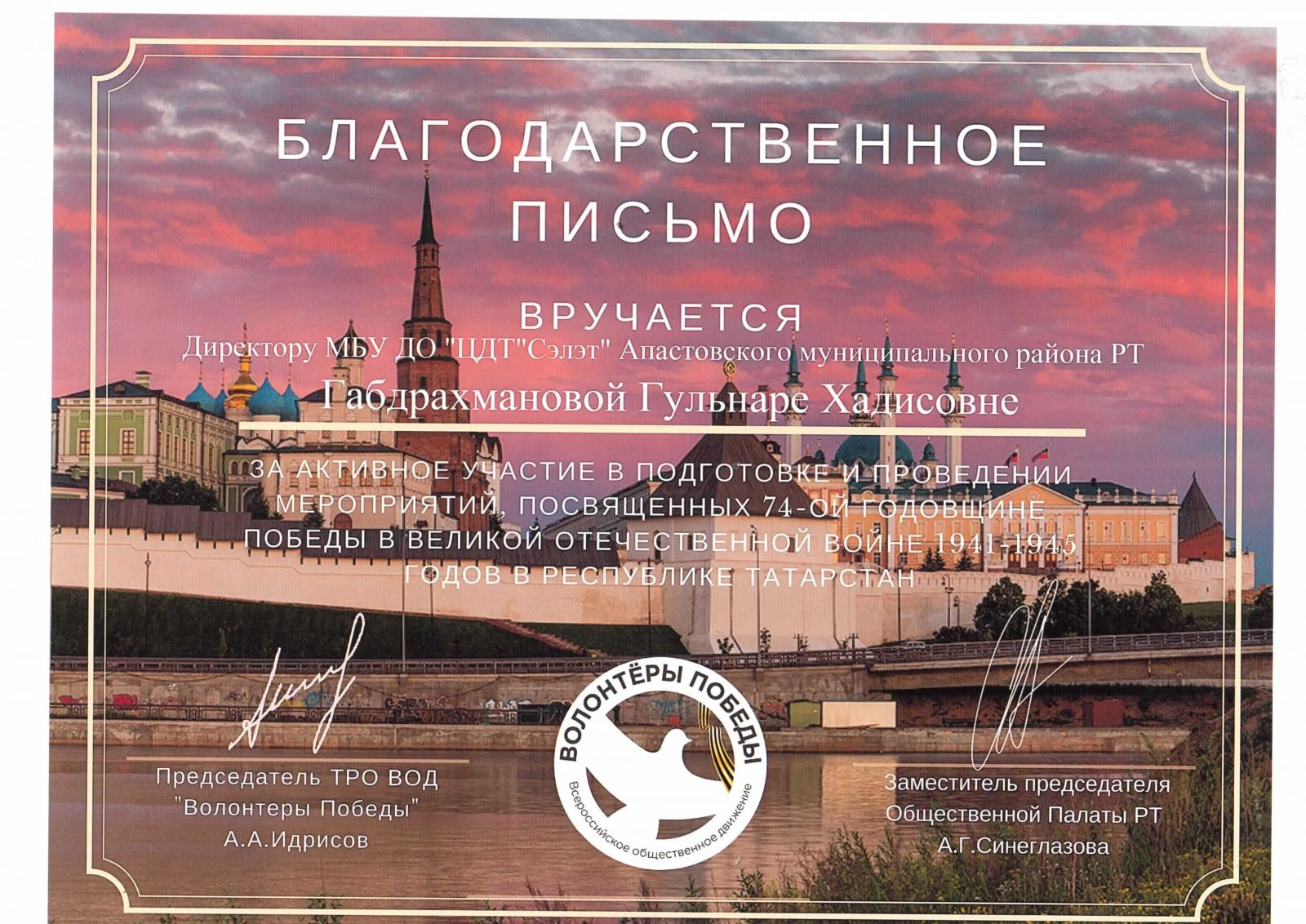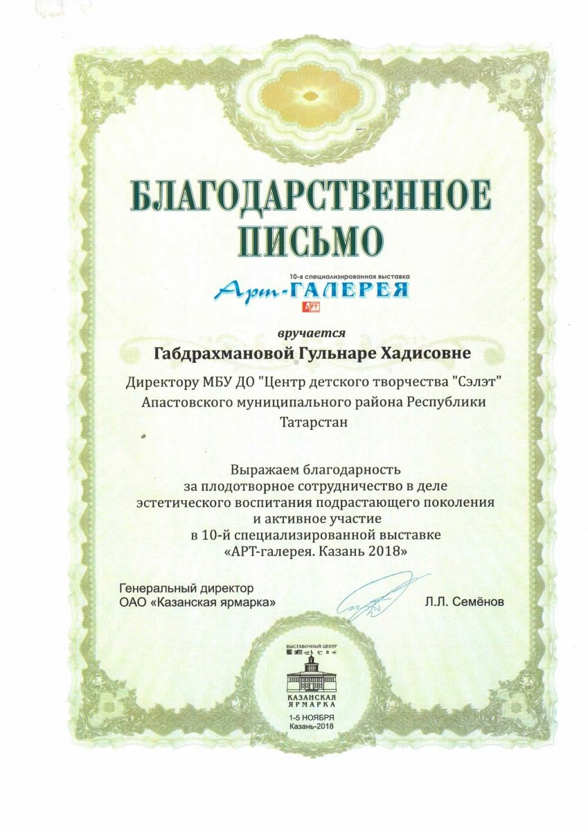 Благодарственное письмо Габдрахмановой Г.Х.J