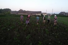 Әниләр белән бергә бәрәңге бакчасында эшлибез.